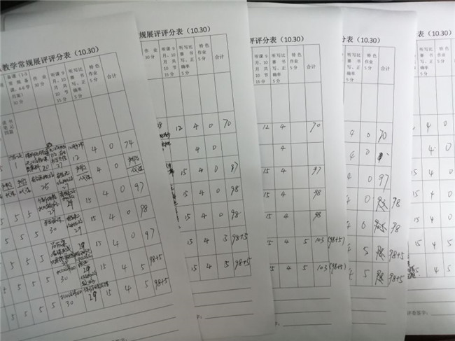 教学常规是学校工作的基本规范,常规工作检查能够有效地了解教师的教学行为和学生的学习情况,是扎扎实实做好教育教学研究工作的一个手段。在学期工作时近过半之际,11月6日下午,我校语文组在会议室进行了教师常规资料和学生作业展评活动。